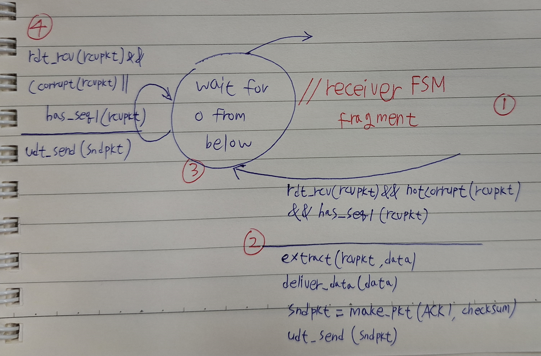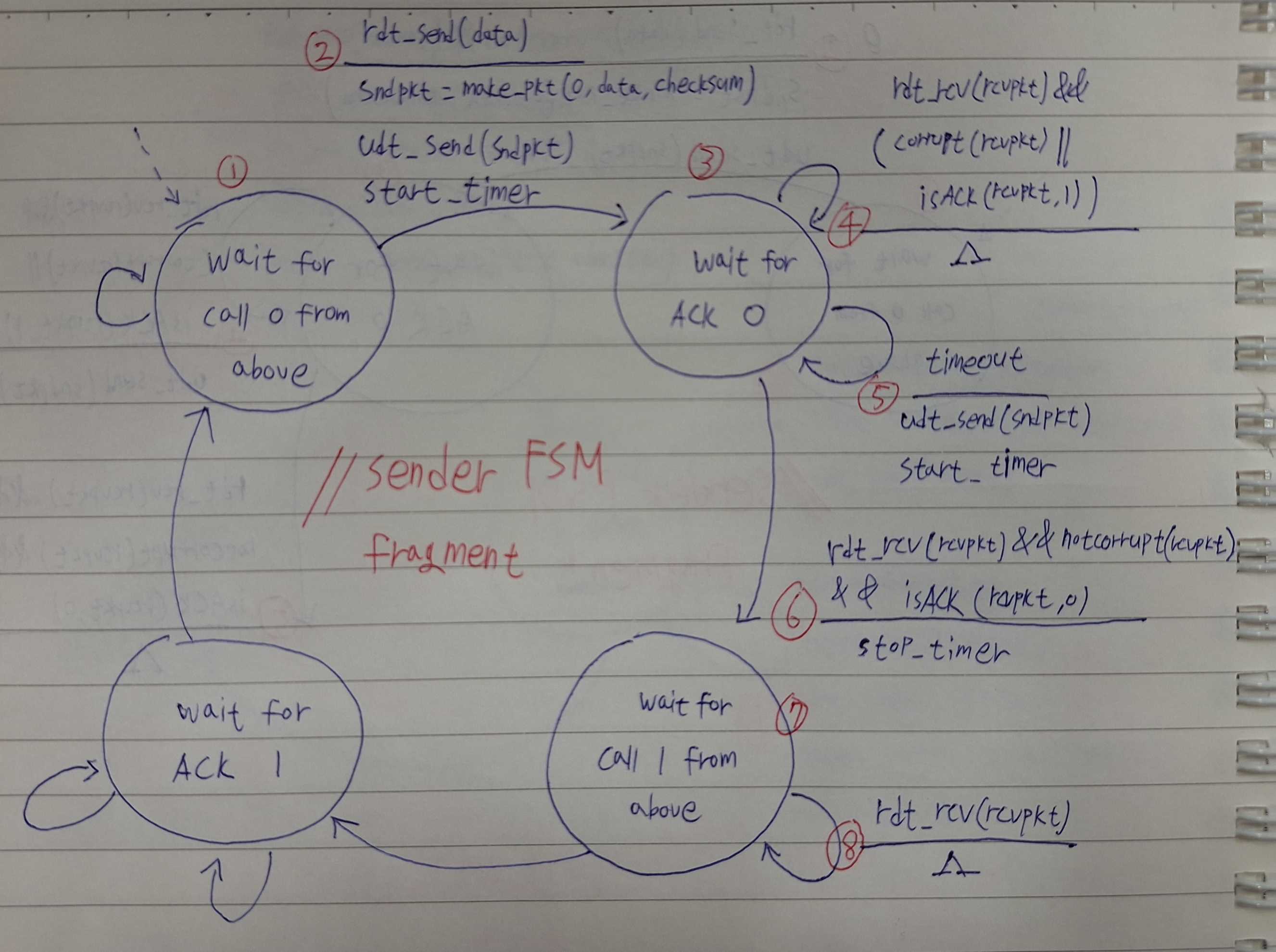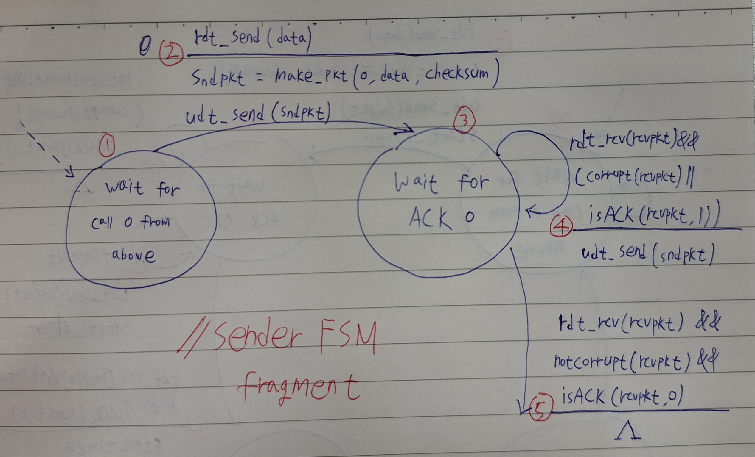 4. 이벤트 : IP로부터 받은 패킷이 손상되었거나 1번 ACK를 받았다.