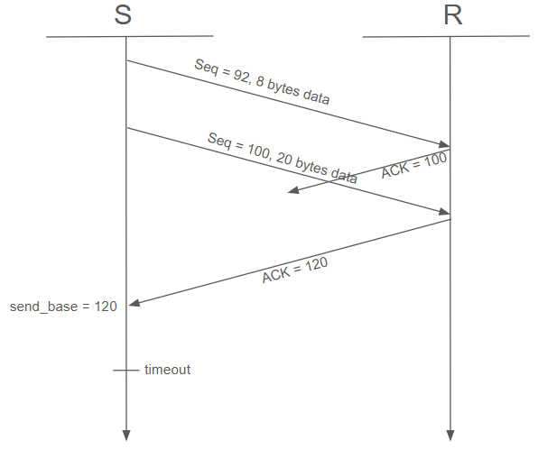 : 타임아웃을 일으킨 세그먼트를 재전송한다. 이때 send_base의 세그먼트만 재전송한다.