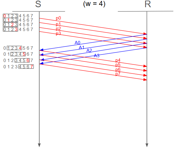 Selective repeat 통신 시나리오는 다음과 같다.