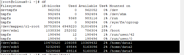 ex) # mount ‐t xfs /dev/sdb1 /home/data1