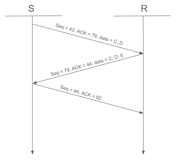TCP 응답 패킷 소실 시 통신 시나리오는 다음과 같다.