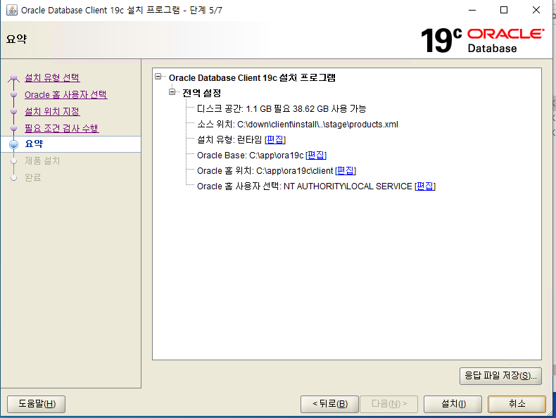 설치할 위치를 지정한다. 설치 위치에 후술할 TNS 명을 정의해야하므로 반드시 설치 위치를 기억한다.