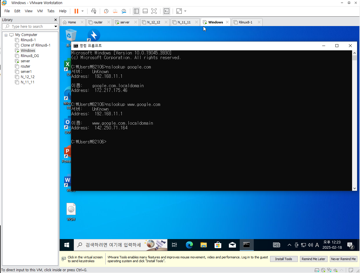 위와 같은 설정을 마쳤다면 다음과 같이 DNS 서버가 작동하는 것을 확인할 수 있다.