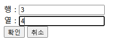 for 문을 사용하여 사용자가 원하는 행과 열의 개수를 입력받아 다음과 같이 테이블을 생성할 수 있다.