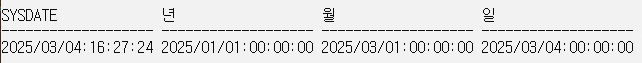 | TRUNC | 형식에 따라 절삭한다. TRUNC(날짜, 형식) |