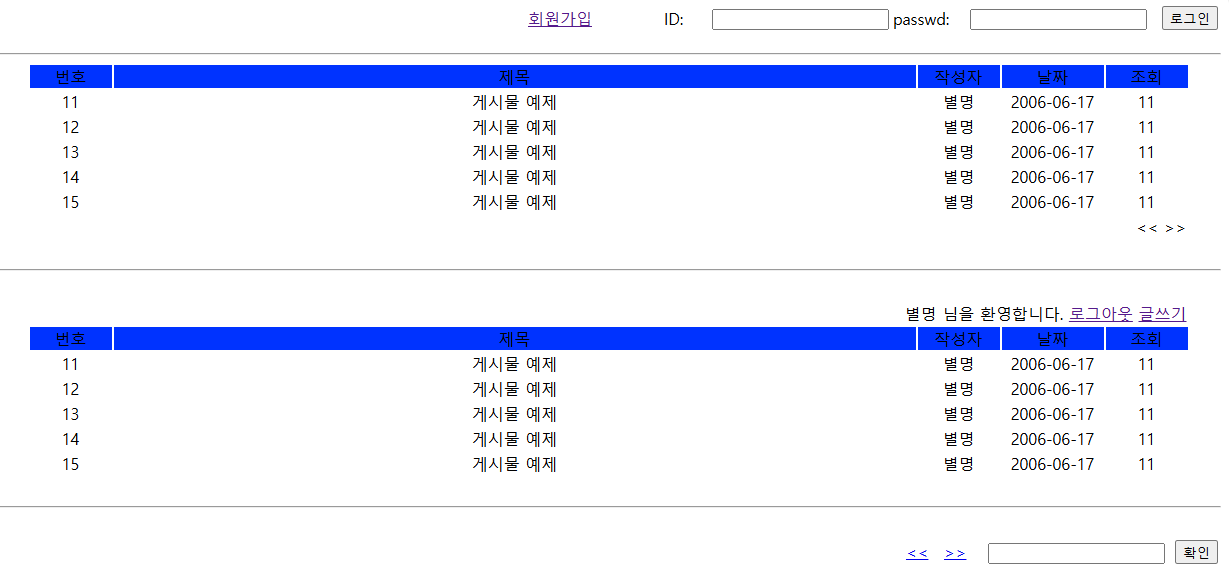 다음과 같은 게시판 관련 html 파일을 작성하고 내 아파치 서버에서 확인한다.