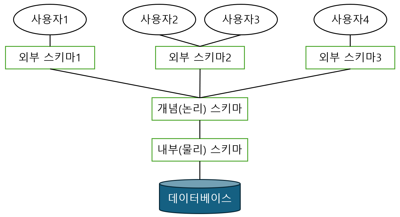 데이터베이스 모델링에 있어 각 스키마 간의 구조는 다음과 같다.