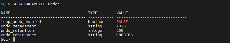 - undo_retention : 언두 정보가 사라져도 정보를 유지하는 시간을 지정한다. (900 = 900초)