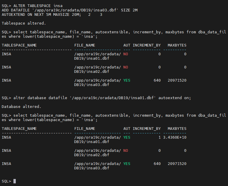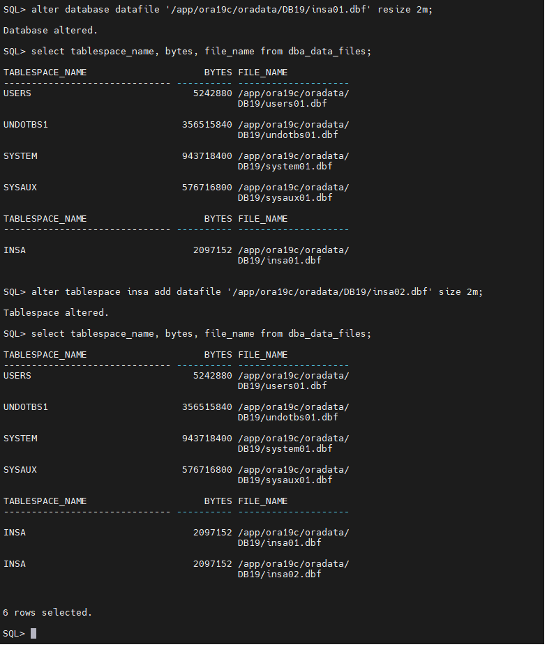 - insa 테이블 스페이스에 2M 크기의 데이터 파일을 추가한다.
