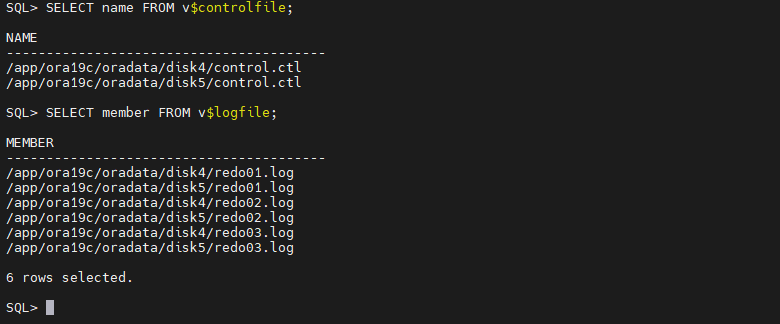 - 데이터 파일 이외에 컨트롤 파일이나 리두 로그 파일의 위치 확인 후 불필요한 DB19 디렉토리를 삭제한다.