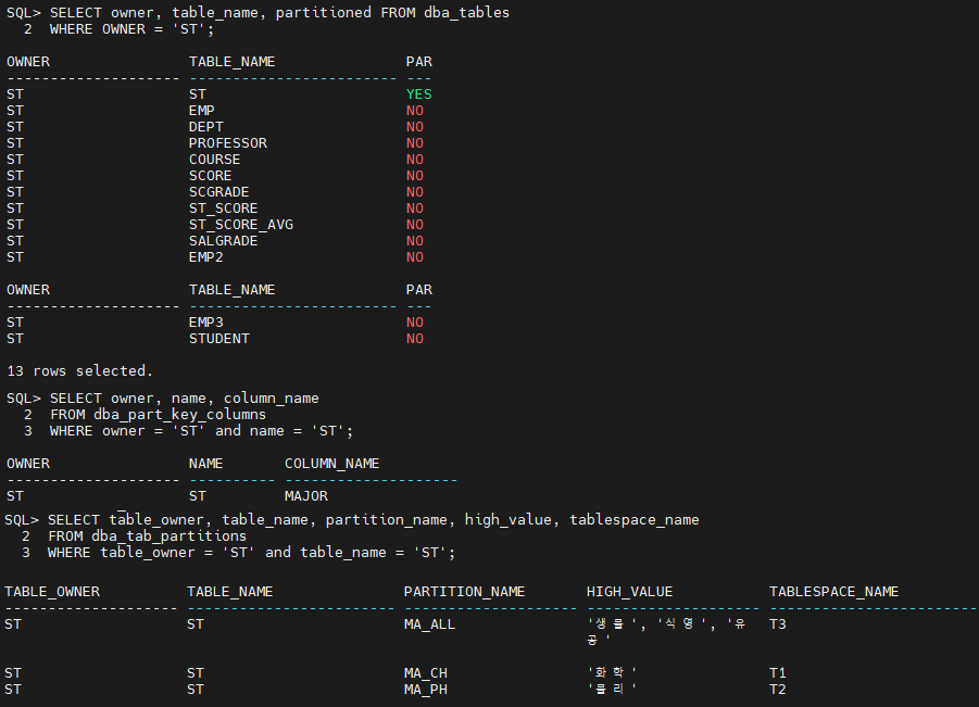 - 생성된 파티션을 지정하여 읽을 수 없다. 사용자가 st.st 테이블을 읽으면 데이터베이스가 알아서 파티션에서 데이터를 읽어온다.