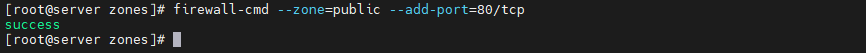 firewall‐cmd ‐‐permanent ‐‐zone=public ‐‐add‐rich‐rule='rule port protocol="tcp" port="80" accept'