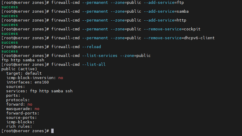 - block, dmz, drop, external, home, internal, public, trusted, work