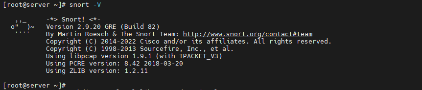 - sonrt -V를 통해 스노트가 잘 설치된 것을 확인한다.