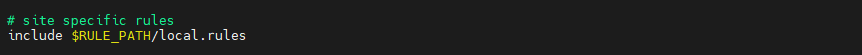 환경설정 파일의 '# site specific rules' 항목에서 'include $RULE_PATH/local.rule'을 제외하고 모두 삭제한다.