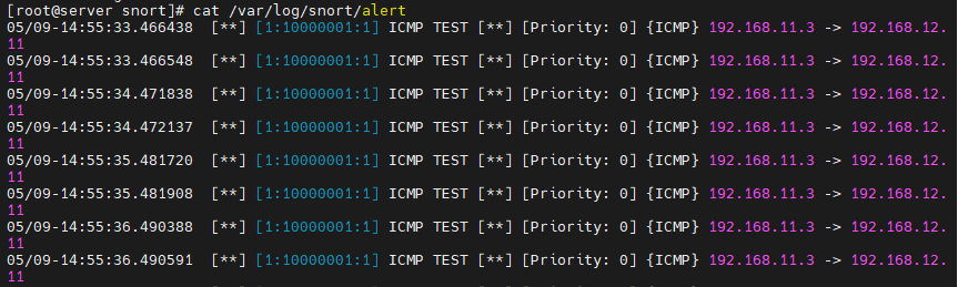 # cat /var/log/snort/alert